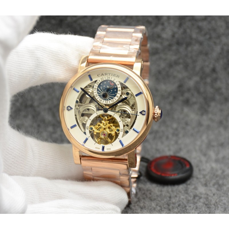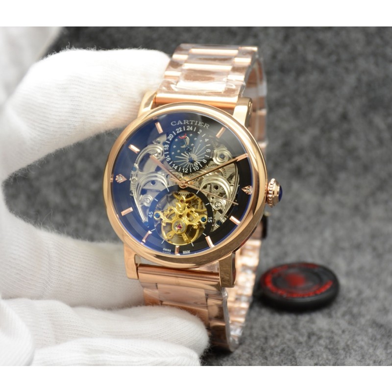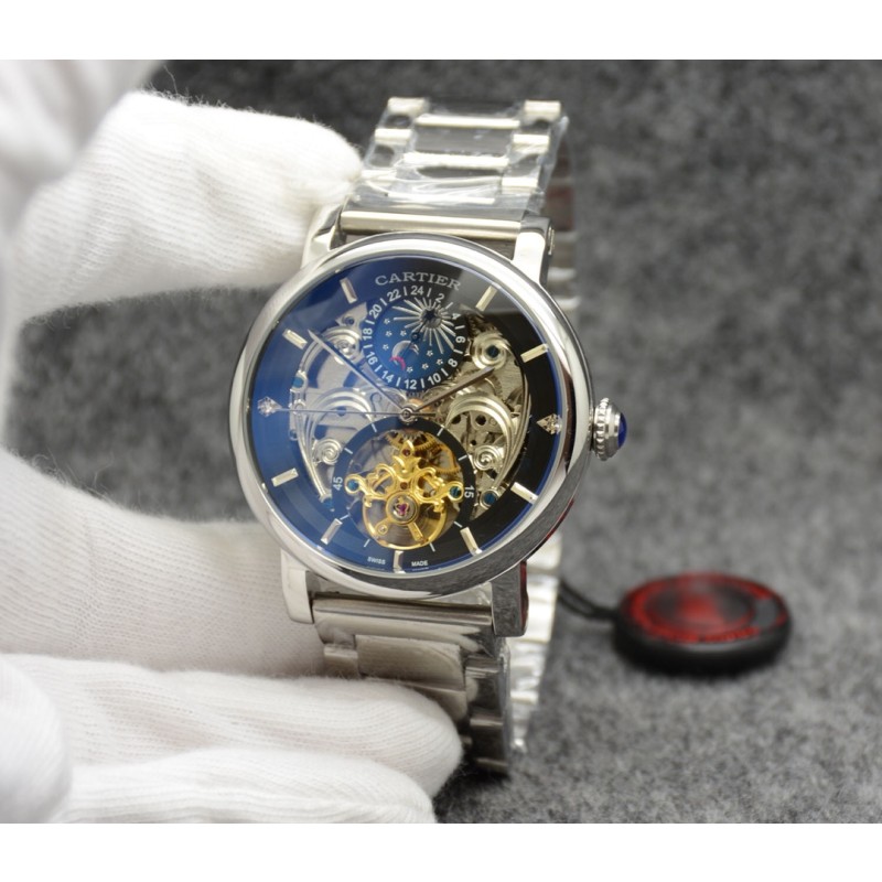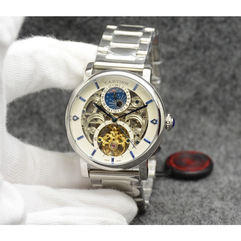 卡地亚 Cartier最新款男士机械腕表[悠闲] [鼓掌]精钢表壳,抛光打磨!表盘采用飞轮镂空设计