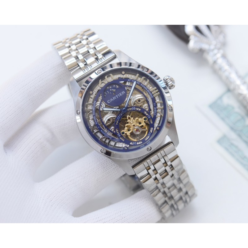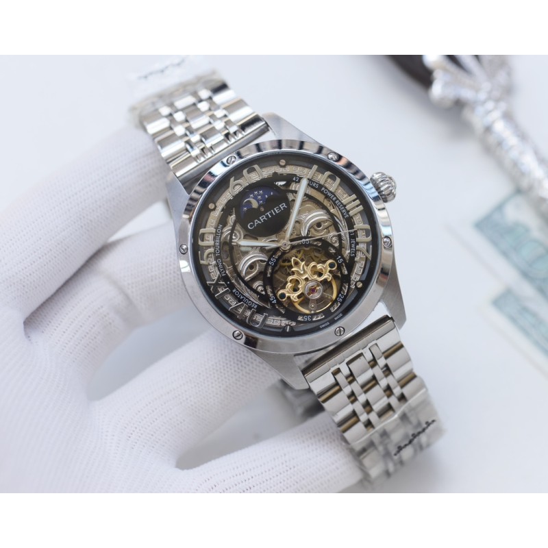 金白同价:皮带p600 钢带620。卡地亚-Cartier 精品男士腕表,劲爆镂空设计,尊贵大气,绅