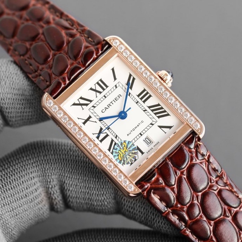 白1150 金1200 钻50 最高版本卡地亚坦克!正品拆解开模,原装即视感!具备现代风格极致品质的TANK系列,是卡地亚创意的顶级典范,是纯粹高雅与永恒设计的胜利展现,是生活形态的象征。其几何设计更是美学的现代标准,率先预示装饰艺术风格的美感规则。搭载有原装进口9015和ETA2892两种机芯,同时提供顶级美洲鳄鱼皮和意大利牛皮,任君选择。剑型烧钢蓝指针让人一见倾心。尺寸: 31mm/40.85mm 所有配件,尺寸参数均与原装一致。如果说蓝气球过于张扬轻浮,那么坦克更有内涵城府!请认准独家品质
