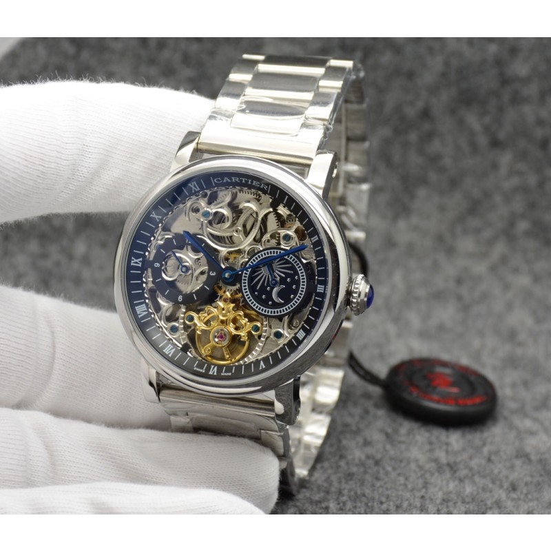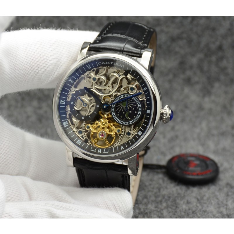 卡地亚 Cartier最新款男士机械腕表[悠闲] [鼓掌]精钢表壳,抛光打磨!表盘采用飞轮镂空设计