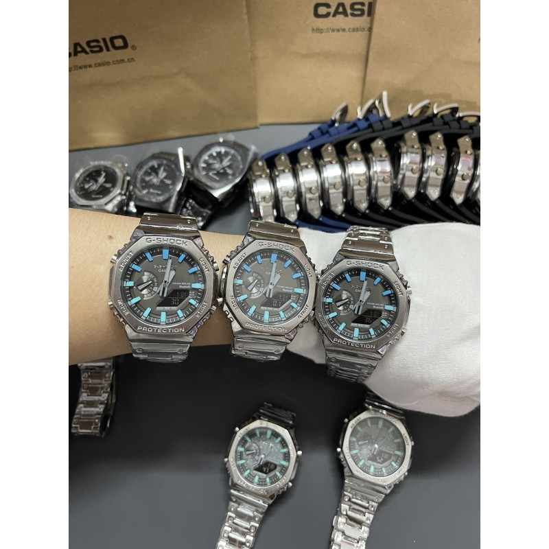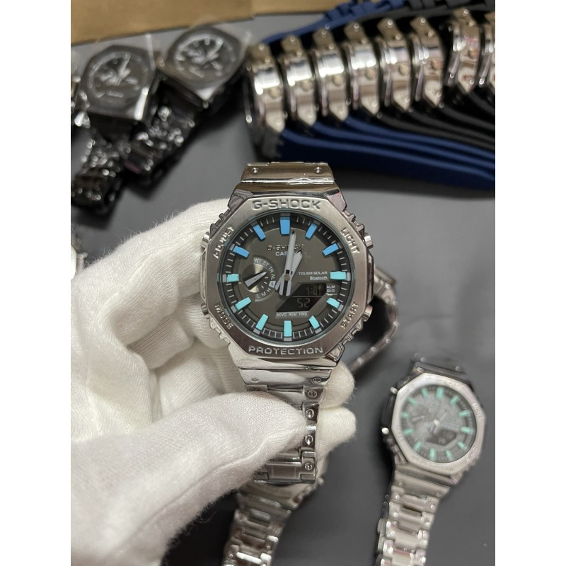 新款金属八角冰蓝精灵钢带系列 型号GM-B2100 功能:太阳能,秒表(精确到1/1000秒)世