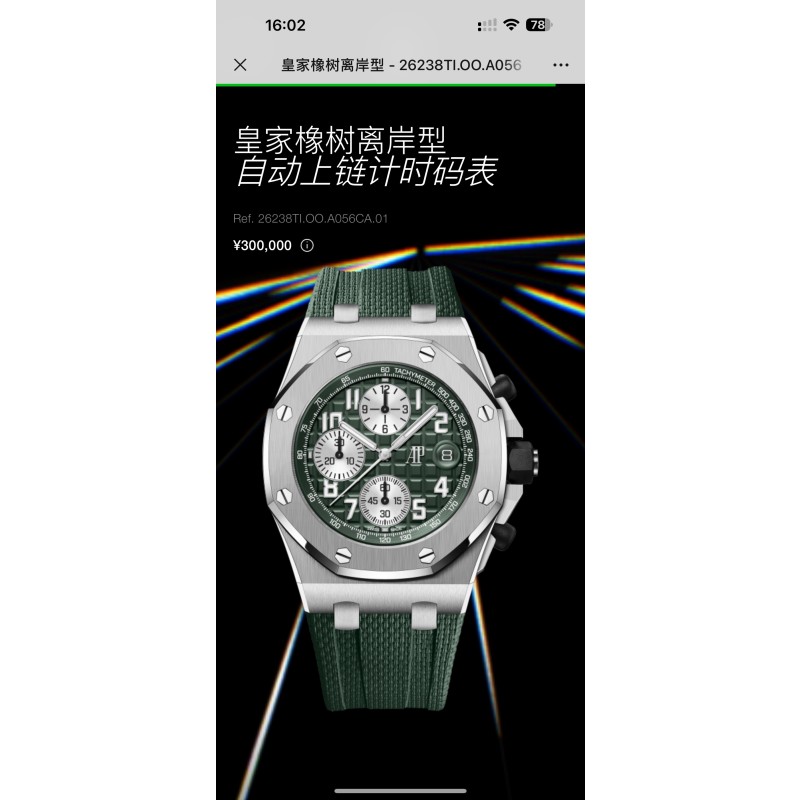 同价380。AP爱彼 皇家橡树系列水果腕表 型号:26703 直径:42mm 超强夜光