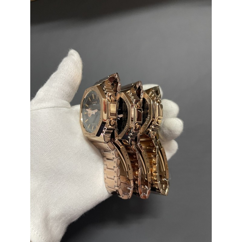 金属八角钢带系列 型号GM-B2100 功能:太阳能,秒表(精确到1/1000秒)世界时间,倒计时,闹铃,间歇响报,自动日历,45度自动抬手亮Led照明! 不锈钢表扣、全钢表带、不锈钢表壳、矿物质玻璃、不锈钢后盖、完美的刻度、原装日本机芯、机芯带双重显示~指针显示~屏幕显示、表针细磨、采用进口太阳能液晶屏、进口LED灯!