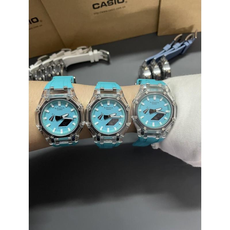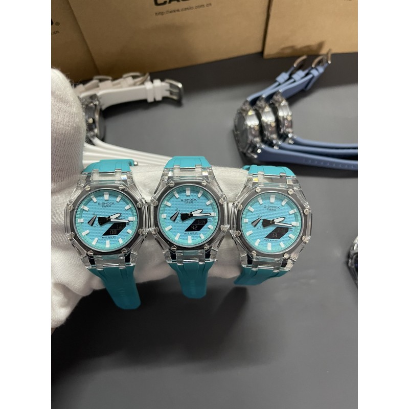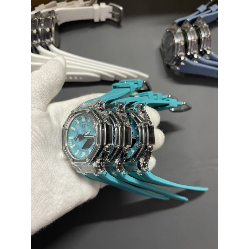 AP农家橡树透明冰川限量 型号:GM-2100A 功能:太阳能、秒表(精确到1/1000秒)世界时间,倒计时,闹铃,间歇响报,自动日历,45度自动抬手亮Led照明! 不锈钢表扣、橡胶表带、硬橡胶表壳、矿物质玻璃、不锈钢后盖、完美的刻度、原装机芯、机芯带双重显示~指针显示~屏幕显示、表针细磨、采用进口液晶屏、进口LED灯!
