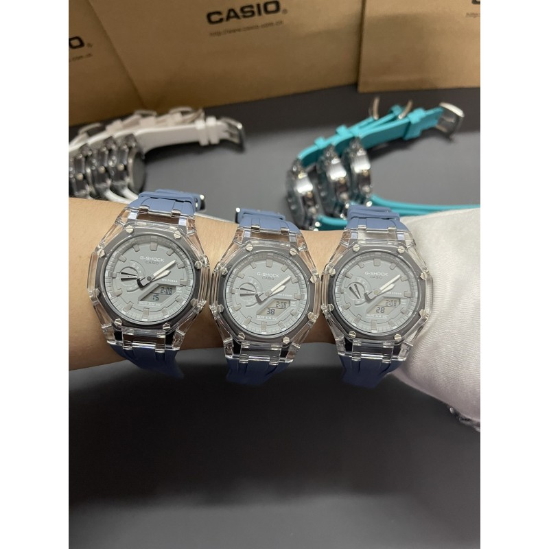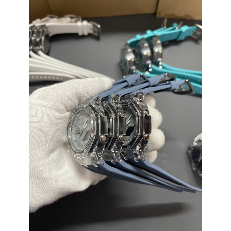AP农家橡树透明冰川限量 型号:GM-2100A 功能:太阳能、秒表(精确到1/1000秒)世界时间,倒计时,闹铃,间歇响报,自动日历,45度自动抬手亮Led照明! 不锈钢表扣、橡胶表带、硬橡胶表壳、矿物质玻璃、不锈钢后盖、完美的刻度、原装机芯、机芯带双重显示~指针显示~屏幕显示、表针细磨、采用进口液晶屏、进口LED灯!
