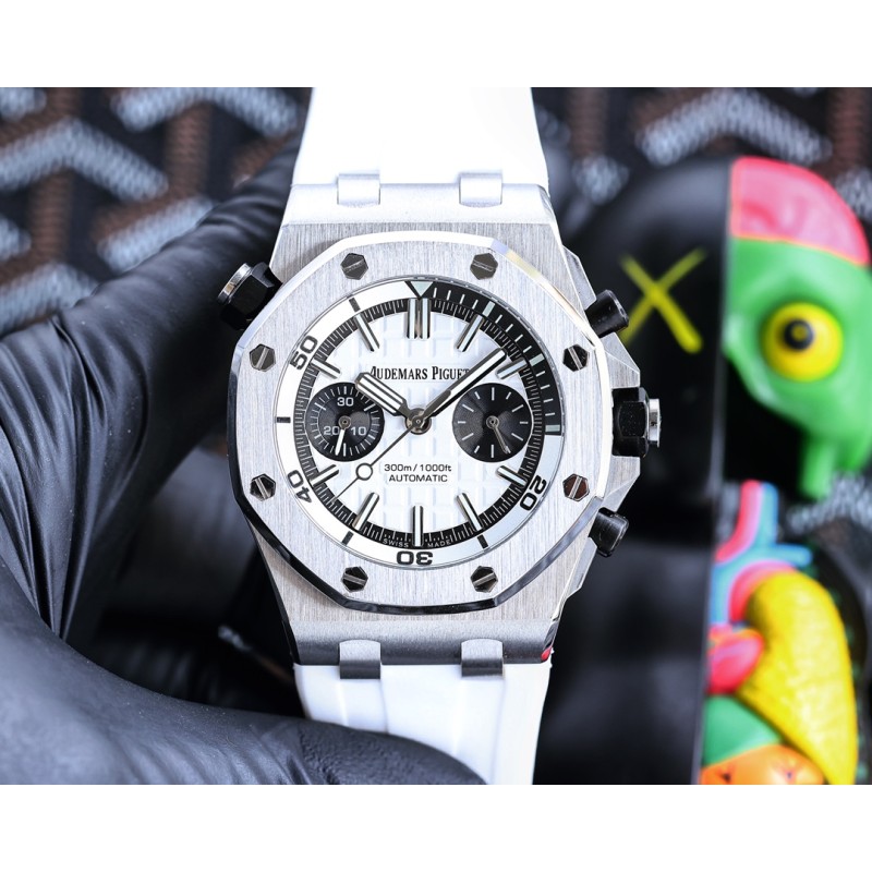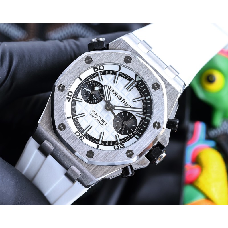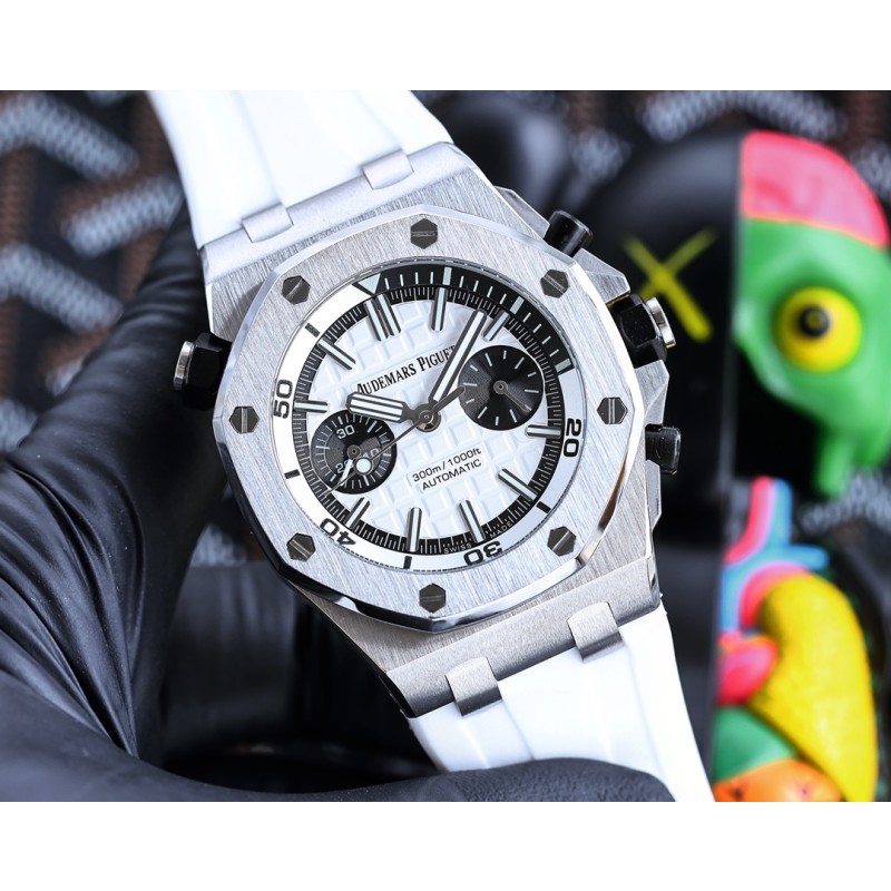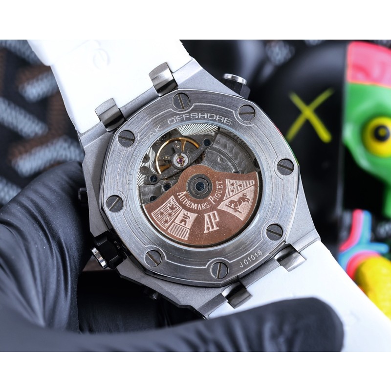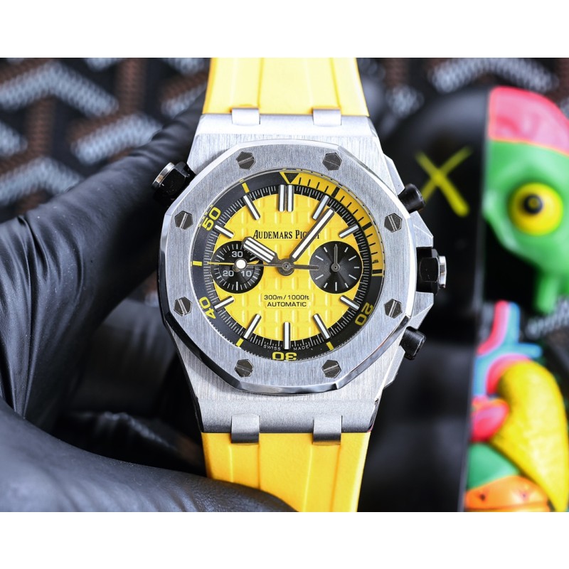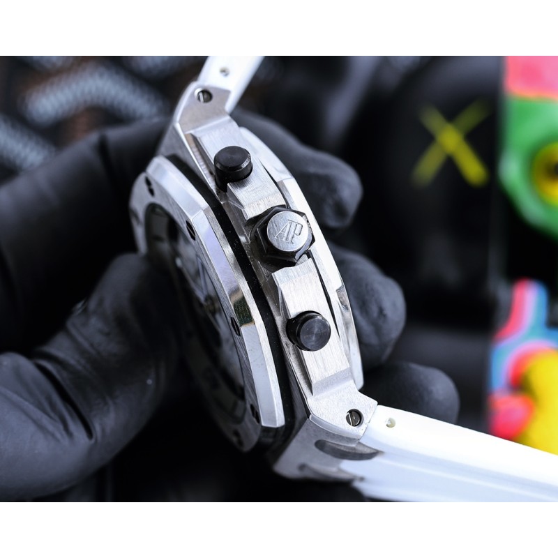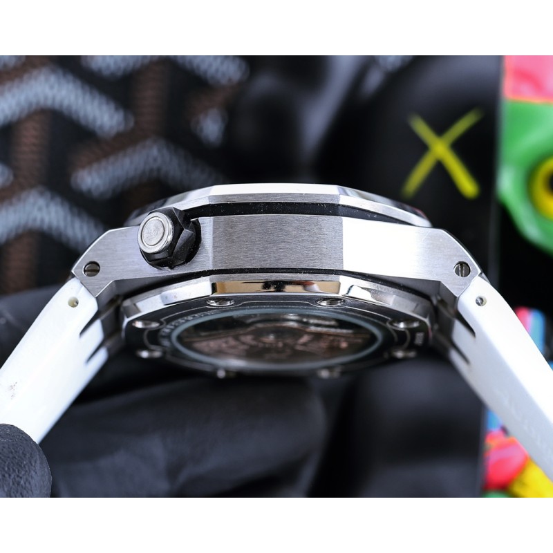爱彼 AP 皇家橡树离岸型系列 镀膜玻璃 尺寸45mm*14mm 防水胶带配AP字样原装针扣 搭载全自动机械机芯 八角拉砂钢壳配网格面 冷酷 霸气 不一样的硬汉