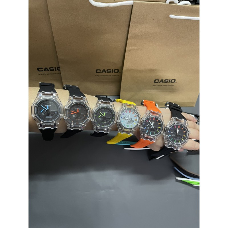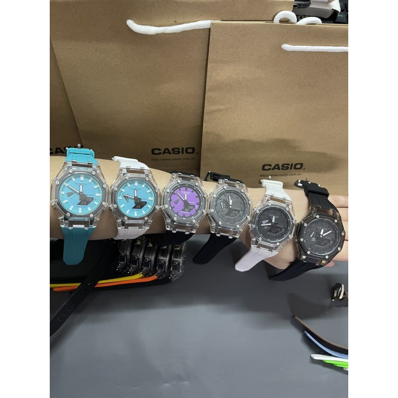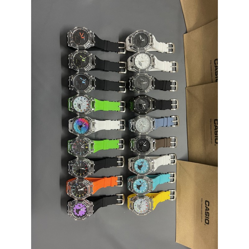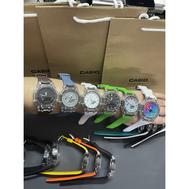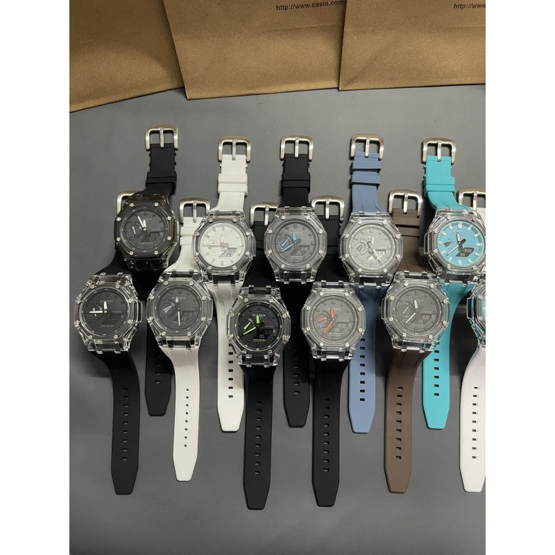 AP农家橡树透明冰川限量 型号:GM-2100A 功能:太阳能、秒表(精确到1/1000秒)世界时间,倒计时,闹铃,间歇响报,自动日历,45度自动抬手亮Led照明! 不锈钢表扣、橡胶表带、硬橡胶表壳、矿物质玻璃、不锈钢后盖、完美的刻度、原装机芯、机芯带双重显示~指针显示~屏幕显示、表针细磨、采用进口液晶屏、进口LED灯!