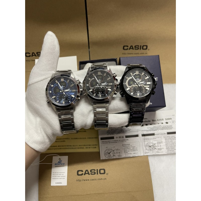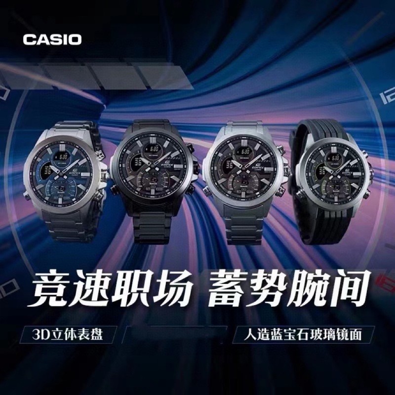 新款钢铁之心限量版 型号:ECB-30 功能:太阳能,秒表(精确到1/1000秒)世界时间,倒计时,闹铃,间歇响报,日历,45度自动抬手亮Led照明!