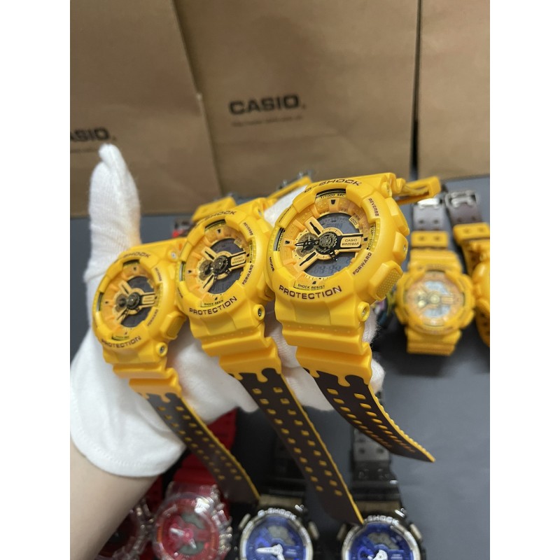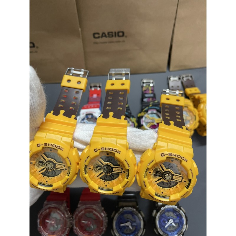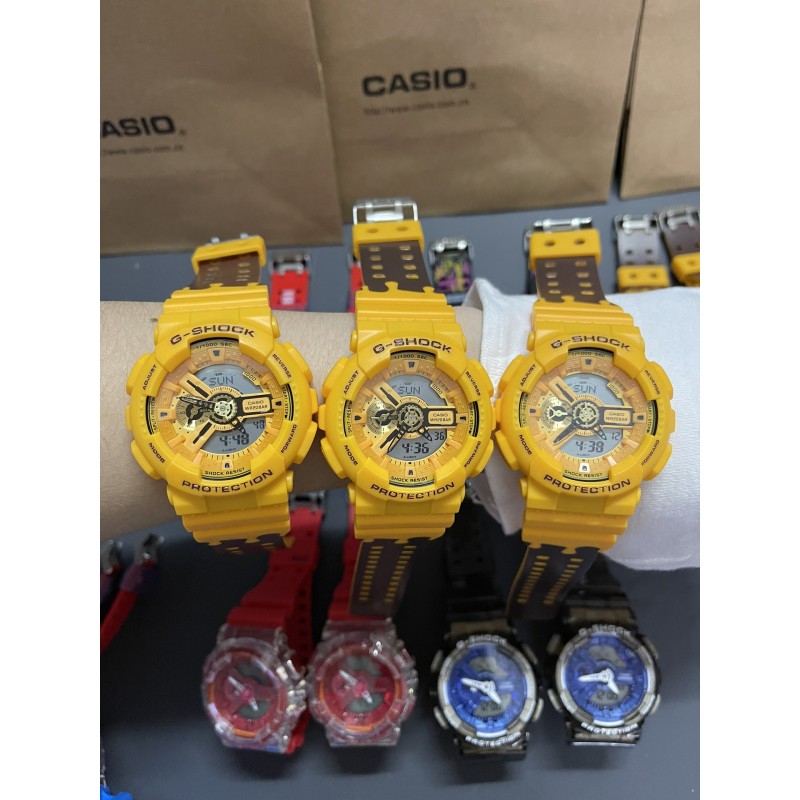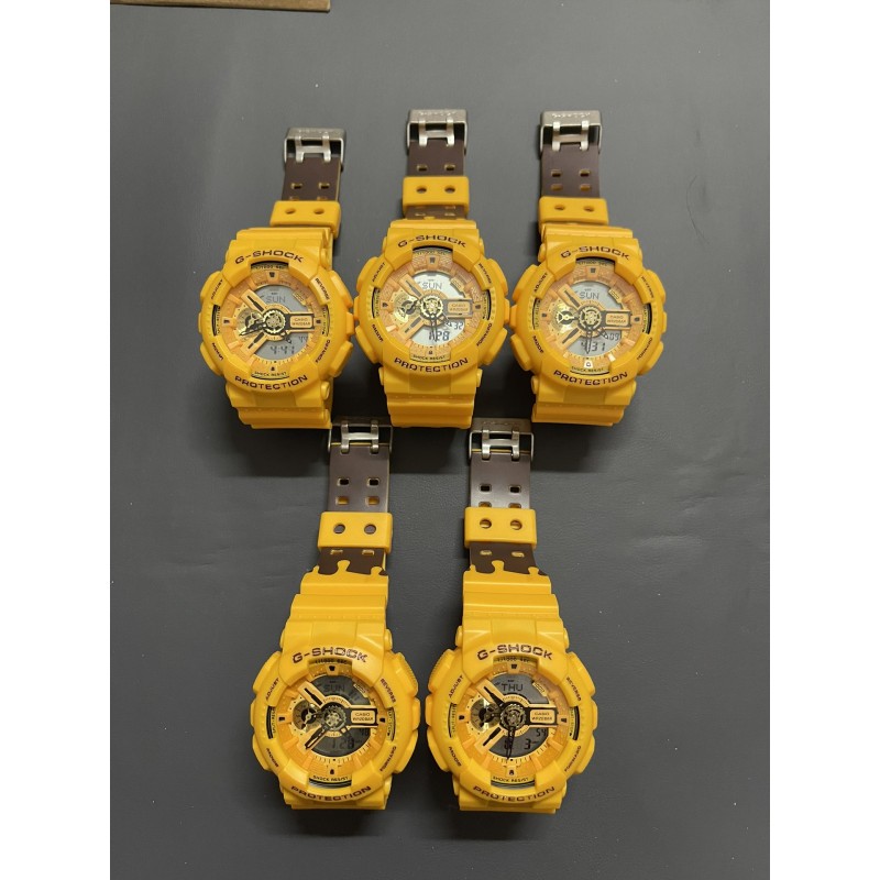小蜜蜂联名限量款 型号:GA~110 功能:秒表(精确到1/1000秒)世界时间,倒计时,闹铃,间歇响报,自动日历,45度自动抬手亮Led照明!