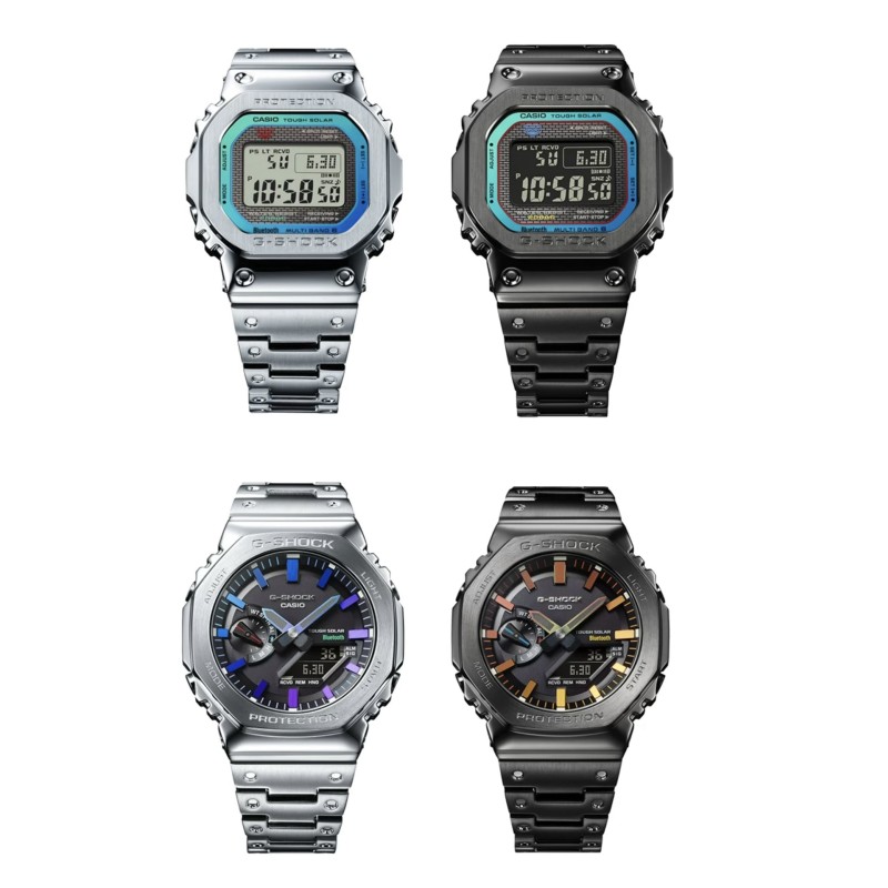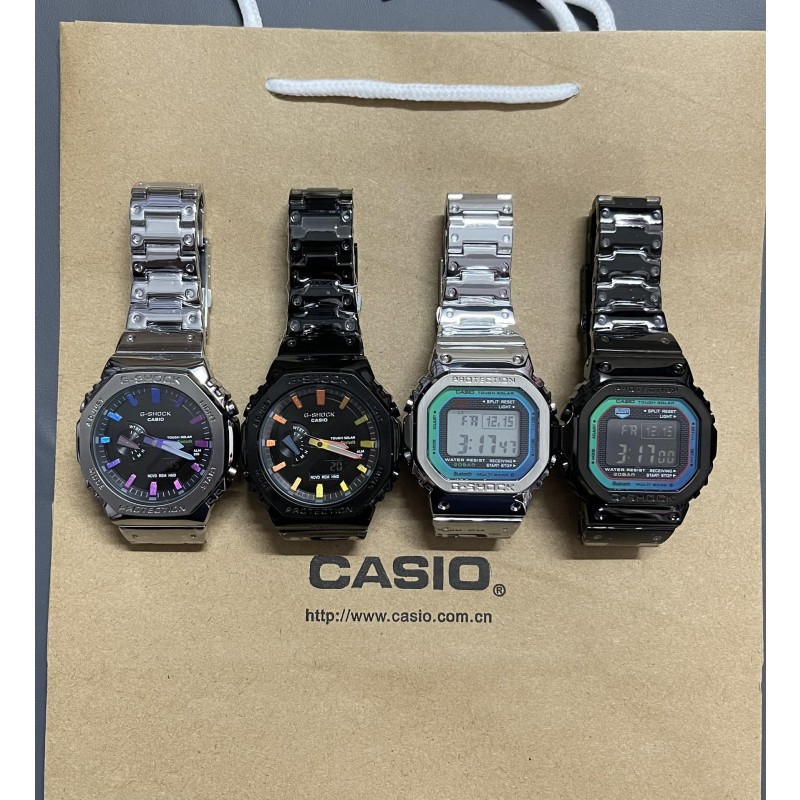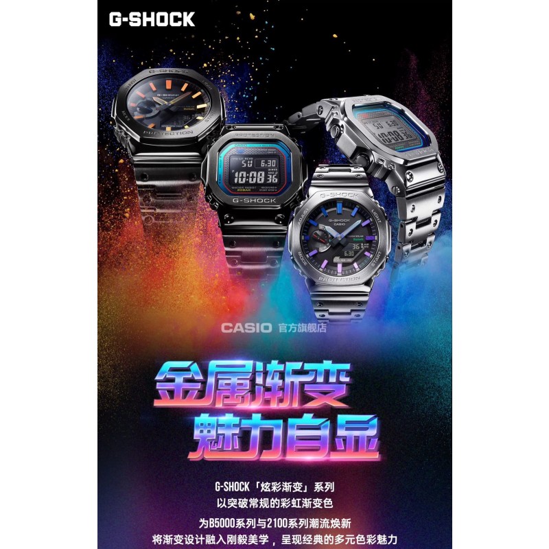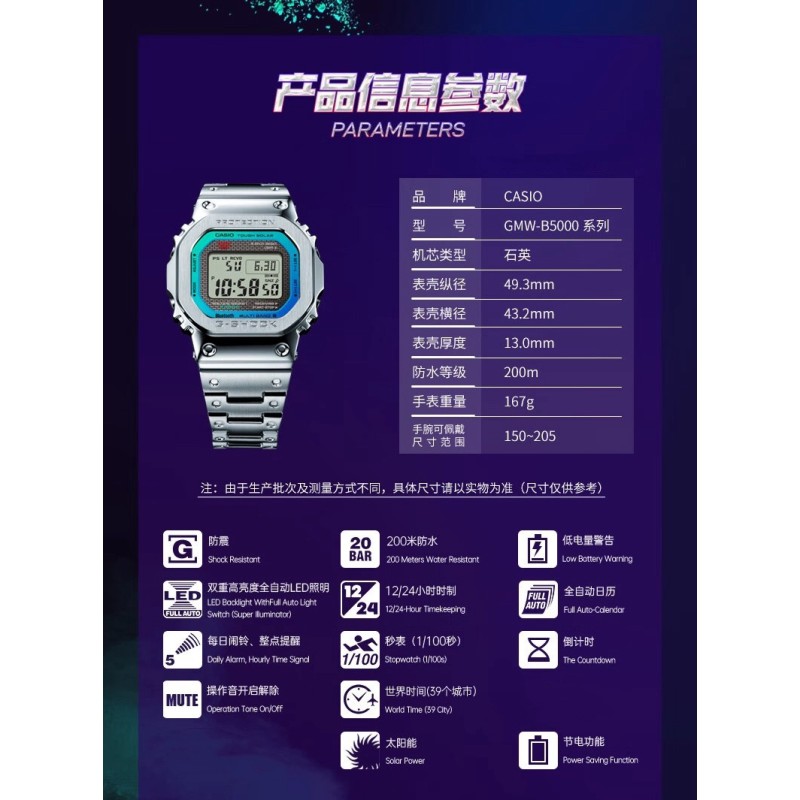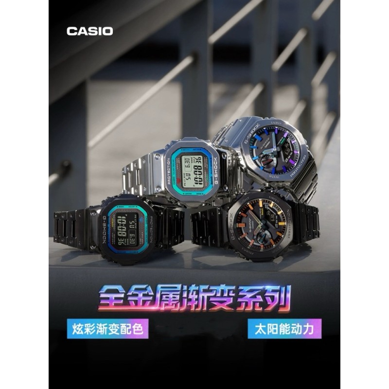 新款炫彩渐变冰蓝精灵钢带系列 型号:GMW-B5000、GM2100 功能:太阳能,秒表(精确到
