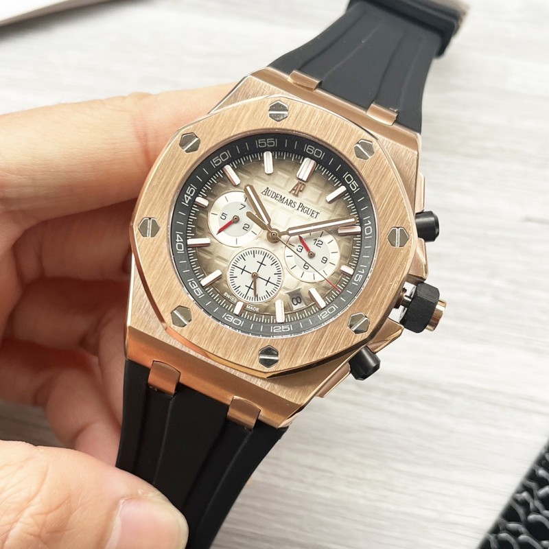 白630金650 新款首发——一波狠货! 原版开模 市场最高性价比版本 爱彼Audemars Piguet 与原装一致,市场超高品质) 爱彼皇家橡树离岸型系列,自动上链机械机芯(升级原装3841自动锤,与原版更接近),新款表盘3D油压效果,316L精钢表壳,超高硬度水晶玻璃镜面,100米超强防水(可潜水游泳)42mm表径,厚度14毫米,表盘具有爱彼独家“Méga Tapisserie”超大型格纹装饰,立体感极强,升级超强夜光功能,表壳整体全部CNC处理,完美还原原装结构,表带为橡胶材质,柔软度与原装吻合,彰显男人霸气请认准独家品质