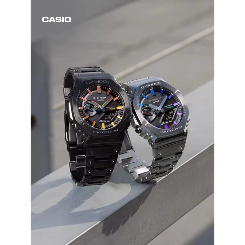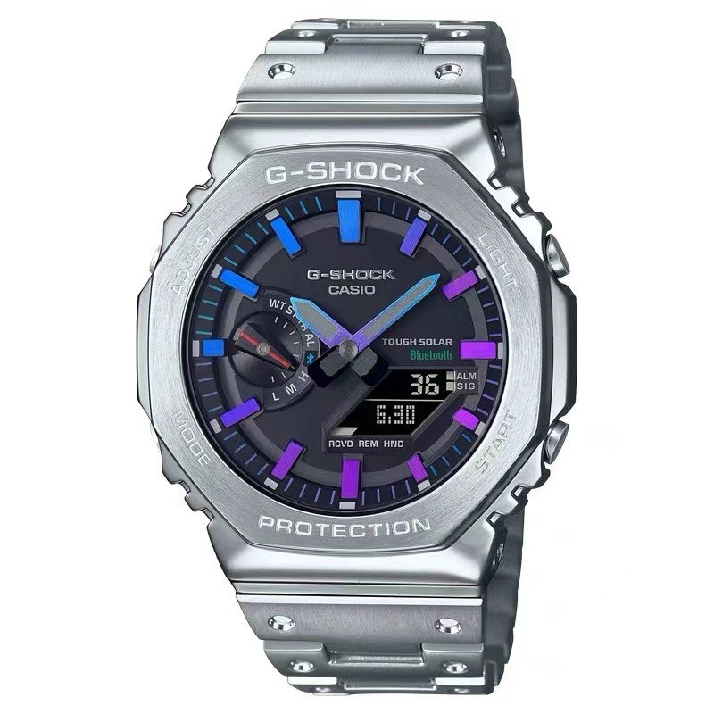 新款金属八角冰蓝精灵钢带系列 型号GM-B2100 功能:太阳能,秒表(精确到1/1000秒)世