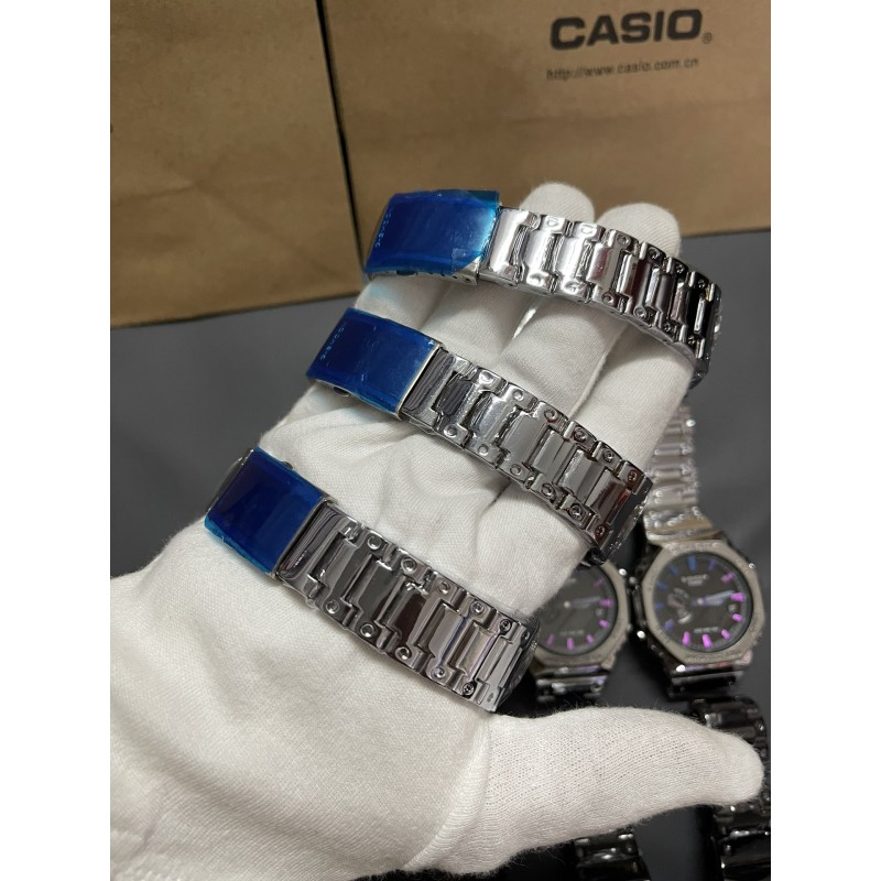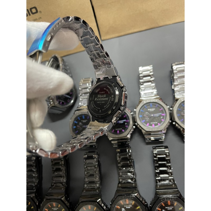 新款金属八角冰蓝精灵钢带系列 型号GM-B2100 功能:太阳能,秒表(精确到1/1000秒)世界时间,倒计时,闹铃,间歇响报,自动日历,45度自动抬手亮Led照明!