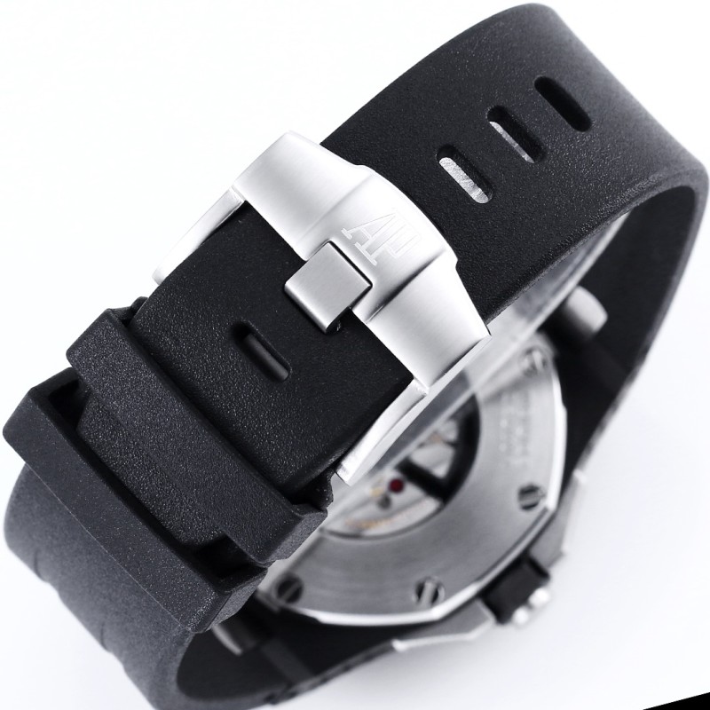白1350-黑1400。 ZF爱彼皇家橡树15600音乐经典版本 【6大精妙之处】1.正品拆解开模,直径44mm厚14mm 2.完美还原正品表壳的每一处细节,尽显正品“棱角分明 坚毅果敢”的阳刚气质。3.进口氟胶做工无可挑剔 .耐脏耐磨不易裂 4.自动陀的与原装致敬,是市面唯一做到颜色于原装一致的版本 其上的ap族徽雕刻独一无二。5.CAL.4309机!更稳定,更优秀,更真实。6.表盘的“音乐纹理”立体饱满,超强夜光 体验精妙 感受不同!