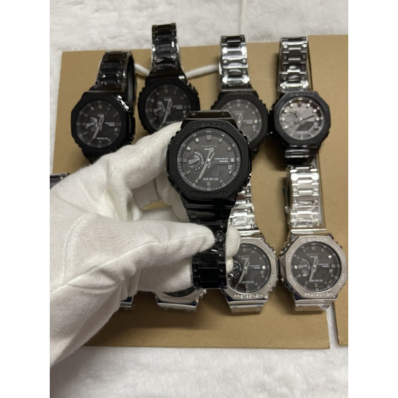 新款钢铁之心八王子钢带系列 型号GM-B2100 功能:太阳能,秒表(精确到1/1000秒)世界时间,倒计时,闹铃,间歇响报,自动日历,45度自动抬手亮Led照明!