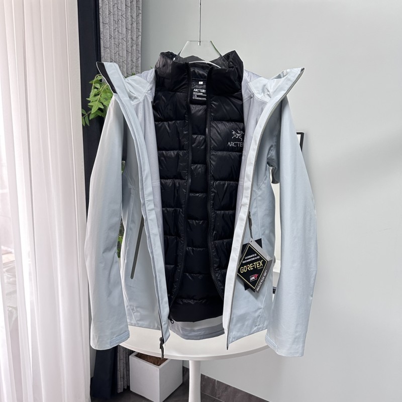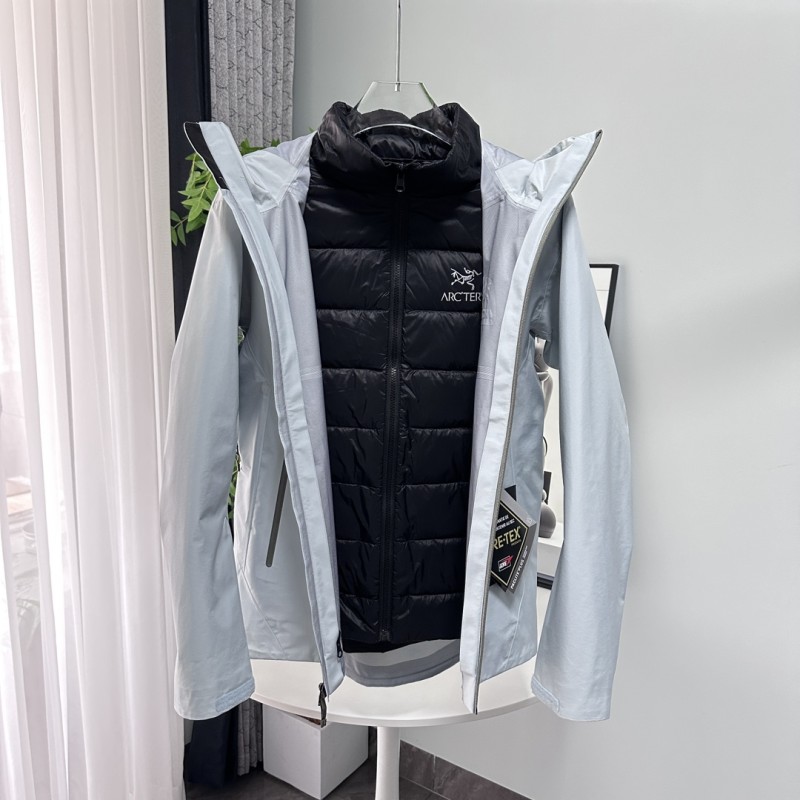 优价直供380 ' |LT贝塔 三合一羽绒服|全压胶工艺|90绒内胆|轻薄保暖一衣三穿 颜色:以太蓝、黑色、 尺码:S、M、L、XL、XXL 最帅三合一冲锋衣羽绒服,三层压胶处理,一件功能性与穿着性多样搭配。整衣3D立体仿生学设计衣长臂弯, 给予手臂足够的空间表现,同时在各环节部位 活动时,不会对服饰版型 有丝毫影响。大大提升户外运动时,对于人体的呵护以及保护。 全套辅料定制,拉链全部YKK定制,腋下采用双向拉链,以保证开合的便捷与尺度。 -这款BetaLT夹克设计简洁而通用,可提供高山环境所需的性能。采用bluesign@认证的采用带经编背衬N40P 3LGORE-TEX面料,轻薄而耐磨,防风、防水且透气,适合多种活动穿着。 -头盔兼容StormHood兜帽防护良好且不影响视线,插手口袋设有WaterTight拉链,便于取放物品,腋下拉链便于快速通风,拼接设计使活动自如。 -传统风琴交叉反向进入高山口袋设置在高位,VISLON中央正面拉链,可调节Velcro袖口魔术贴标签,兼容Zip-in,在胸前采用百达灵机器绣上了徽标