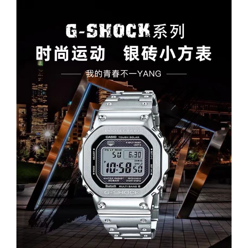 小银砖限量全金属 型号:GM-B5000 功能:太阳能,秒表(精确到1/1000秒)世界时间,倒计时,闹铃,间歇响报,自动日历,45度自动抬手亮Led照明!