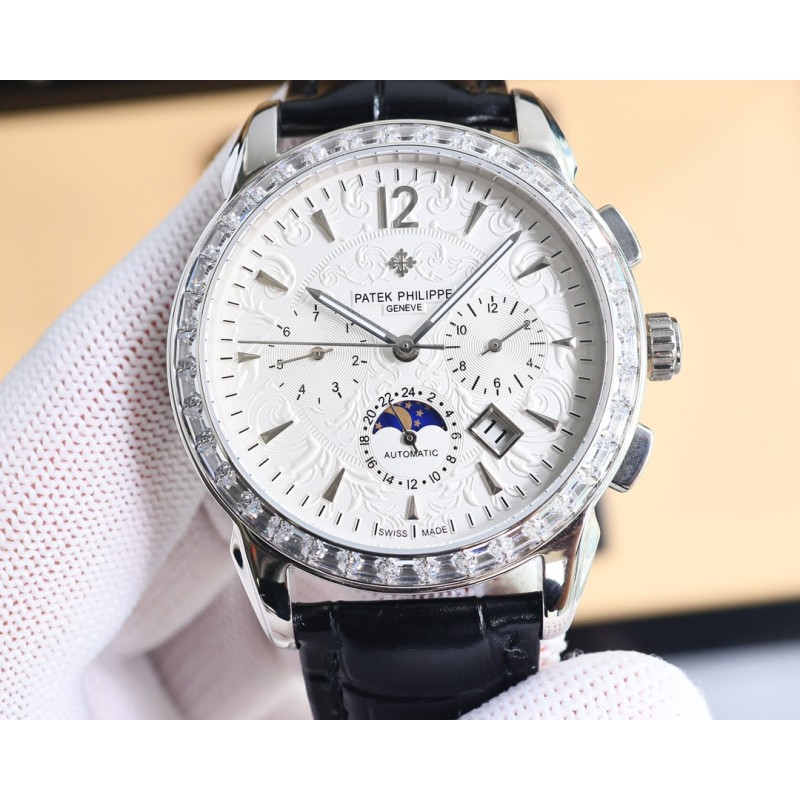 白1500-金1550。实拍 百达 翡丽Patek Philippe 复杂系列六针男表[爱心]爆款[爱心] 多功能腕表! 1搭载原装进口9100星期月份月相动能功能机芯机械表! 2表盘上采用经典独家内影夜罗马 作为刻度更显示出这款腕表的华贵气质[呲牙] 3皮带采用进口方形鳞纹牛皮表带! 4表镜采用双卜蓝宝石镜面! 5透视底盖! 6直径42毫米,厚度10毫米! 腕表功能汇集星期/月份/日期/月亮/太阳等功能于一身,最佳男士商务腕表真正的标配!为高端腕表的代表之作! 荣誉出品 尊贵彰显之美誉细节之处透露男士高贵,品位十分,匠心巨制 大气媲美原装货!表里如一 独具匠心AD出品 精品不断