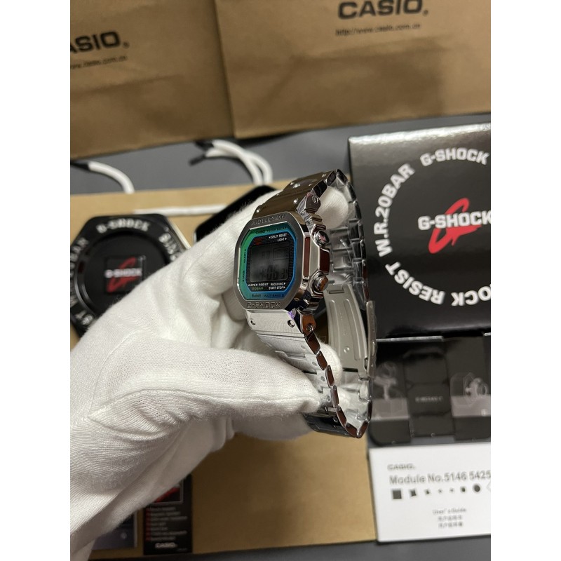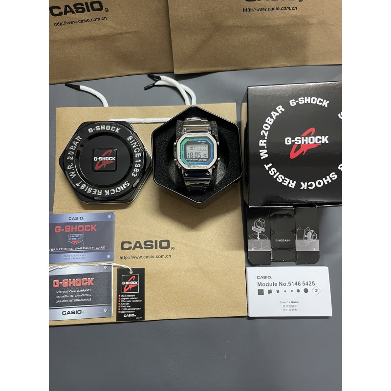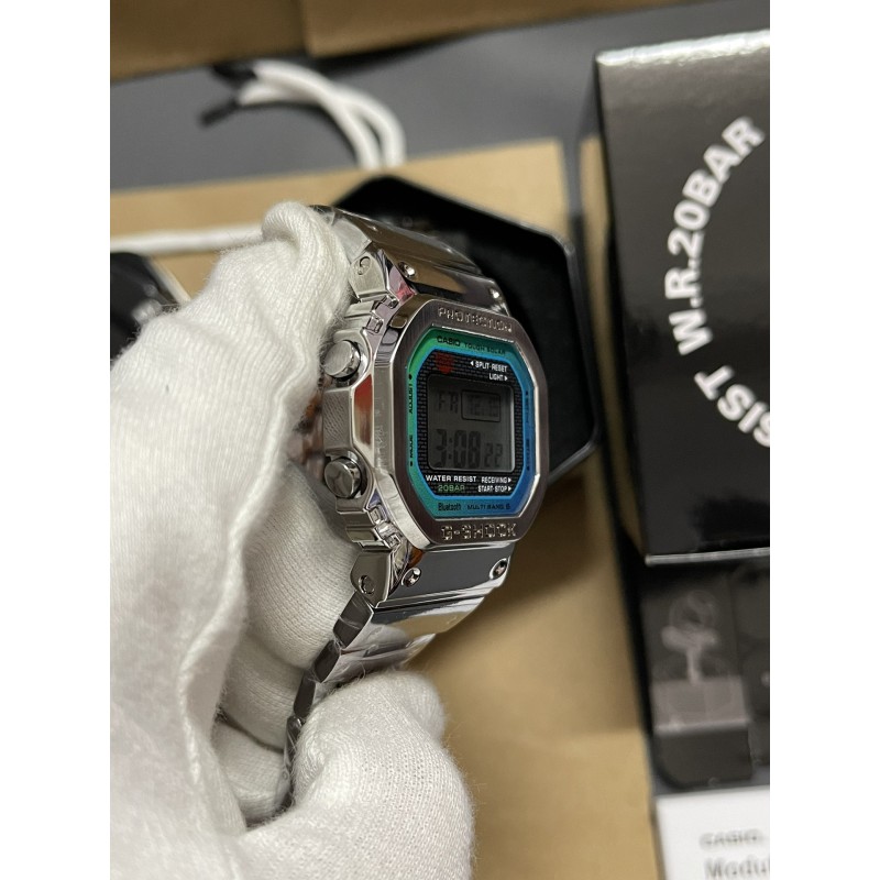 新款炫彩渐变冰蓝精灵钢带系列 型号:GMW-B5000 功能:太阳能,秒表(精确到1/1000秒)世界时间,倒计时,闹铃,间歇响报,自动日历,45度自动抬手亮Led照明!