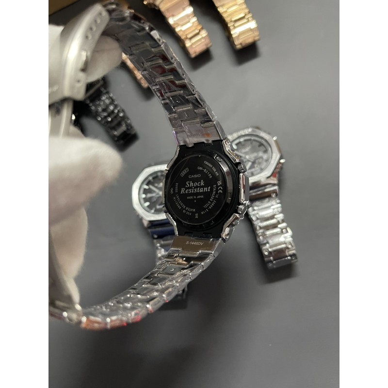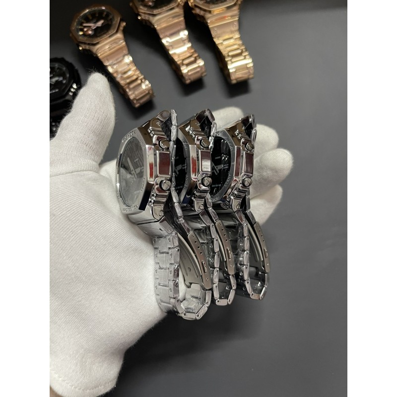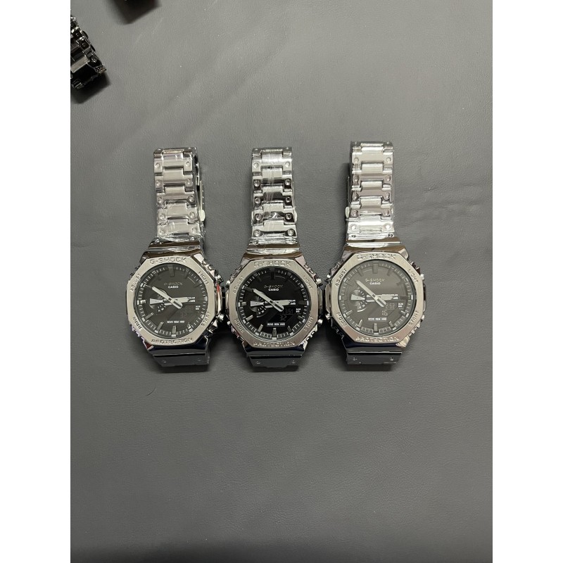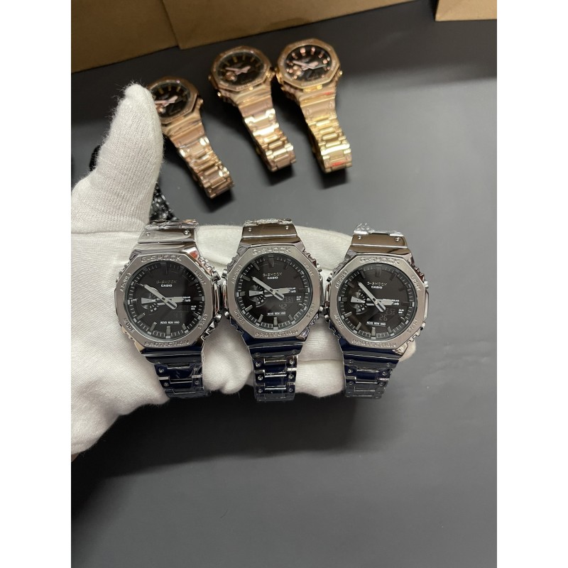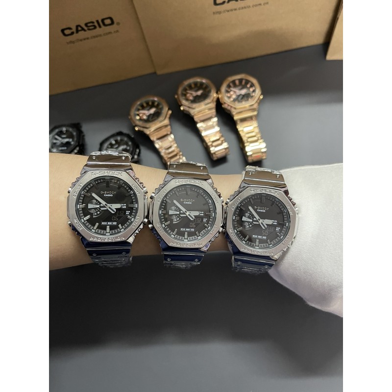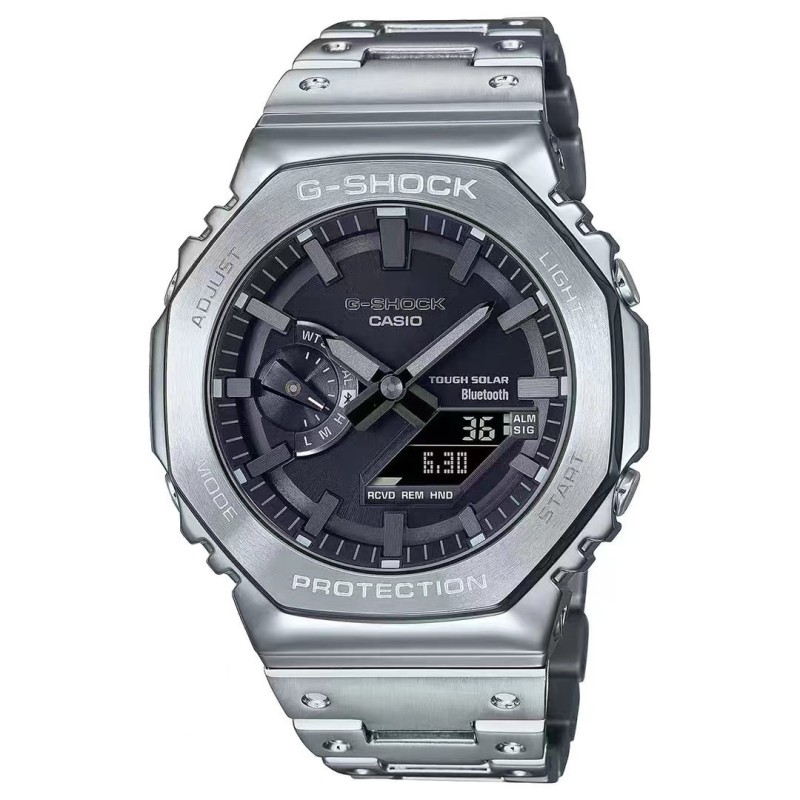 金属八角钢带系列 型号GM-B2100 功能:太阳能,秒表(精确到1/1000秒)世界时间,倒计时,闹铃,间歇响报,自动日历,45度自动抬手亮Led照明! 不锈钢表扣、全钢表带、不锈钢表壳、矿物质玻璃、不锈钢后盖、完美的刻度、原装日本机芯、机芯带双重显示~指针显示~屏幕显示、表针细磨、采用进口太阳能液晶屏、进口LED灯!