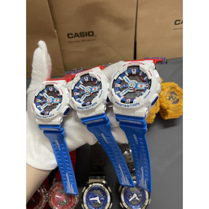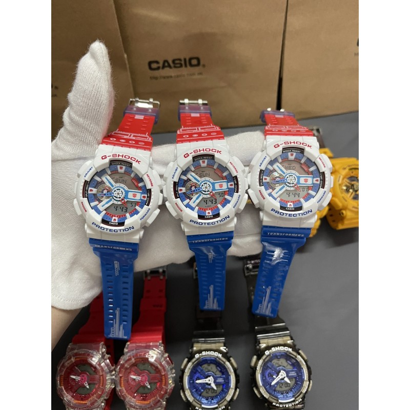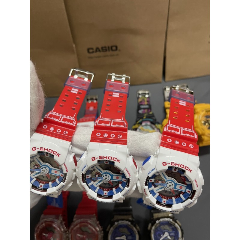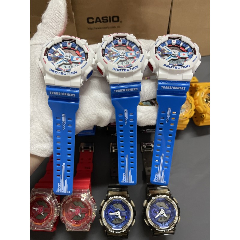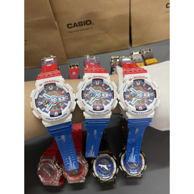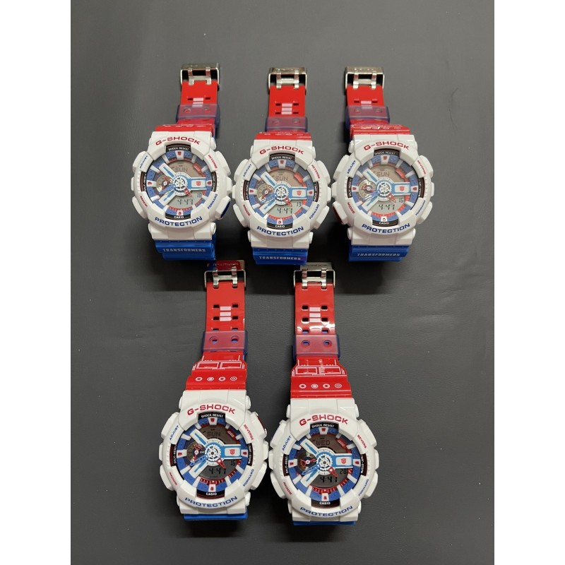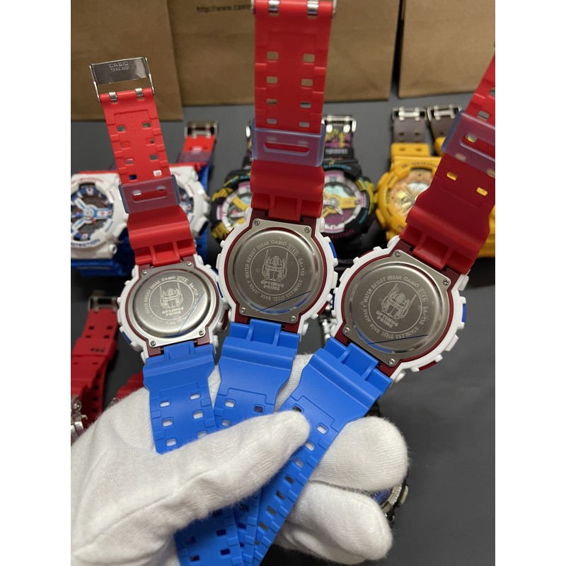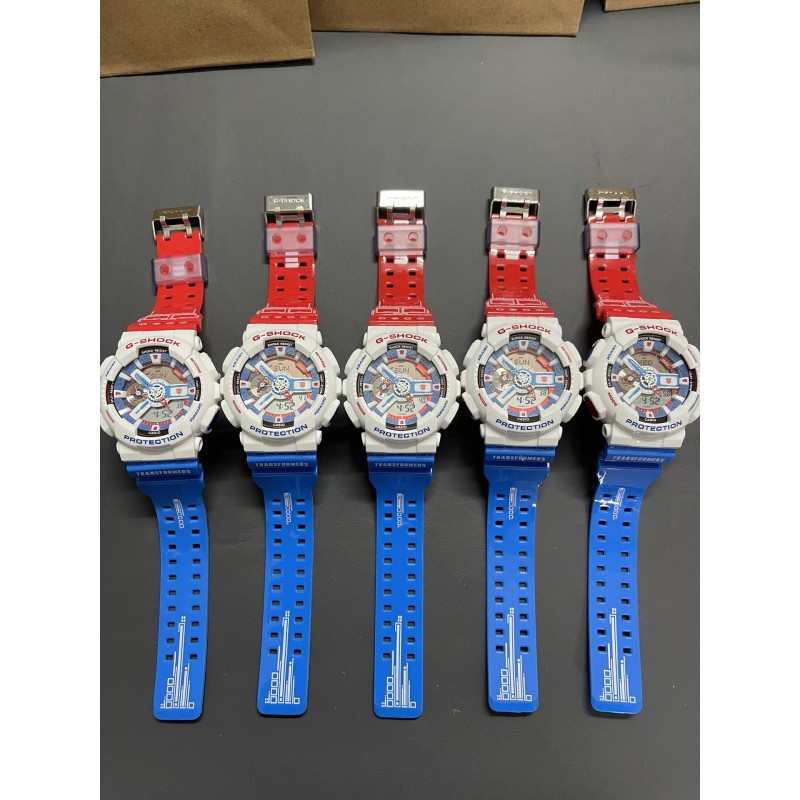 变形金刚擎天柱联名限量款 型号:GA~110 功能:秒表(精确到1/1000秒)世界时间,倒计时,闹铃,间歇响报,自动日历,45度自动抬手亮Led照明!