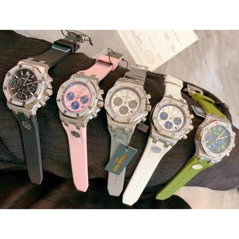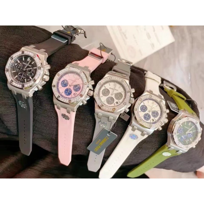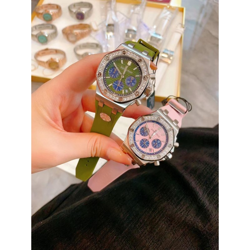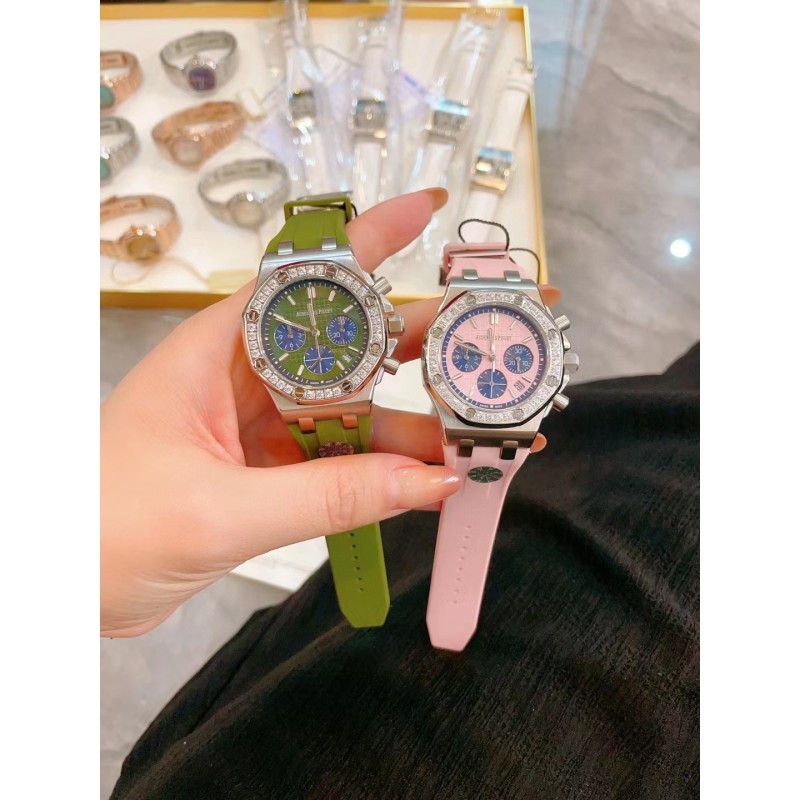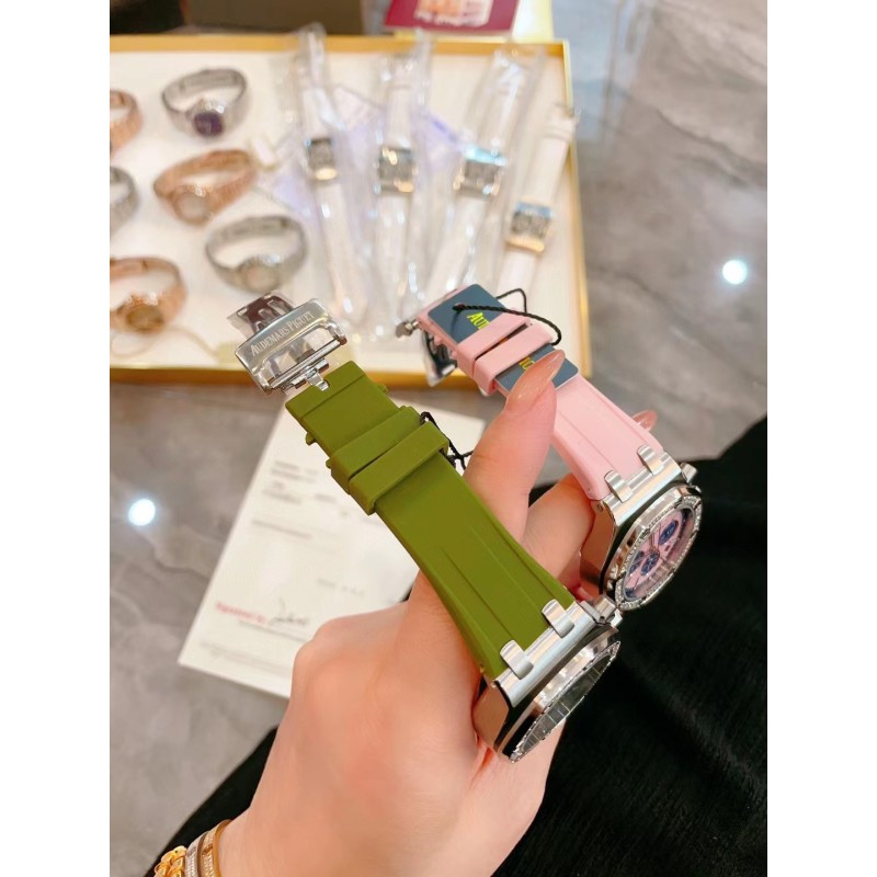 批450网红爆款AP爱彼皇家橡树系列 美女几乎人手一枚!精钢表壳镶钻八角钻石壳边设计 进口日本多动能石英机芯 稳定带计时功能 蓝宝石水晶镜面刮不花玻璃 采用食品级别安全橡胶表带亲肤无毒性 百搭尺寸37mm任何女士手型都可以佩戴,MF厂高版本值得拥有