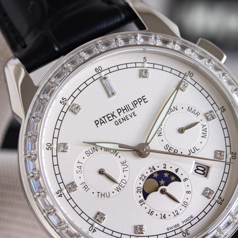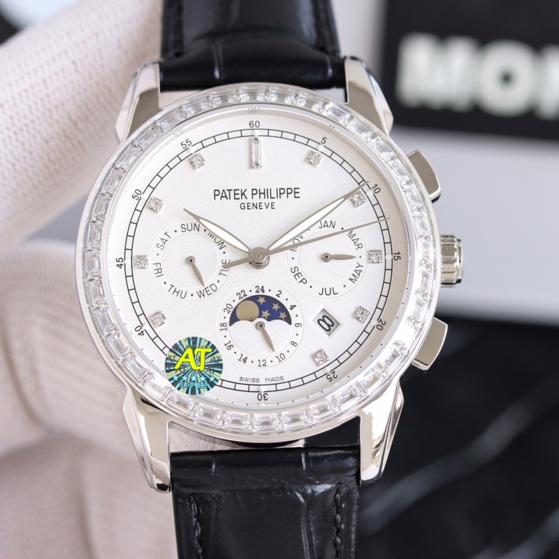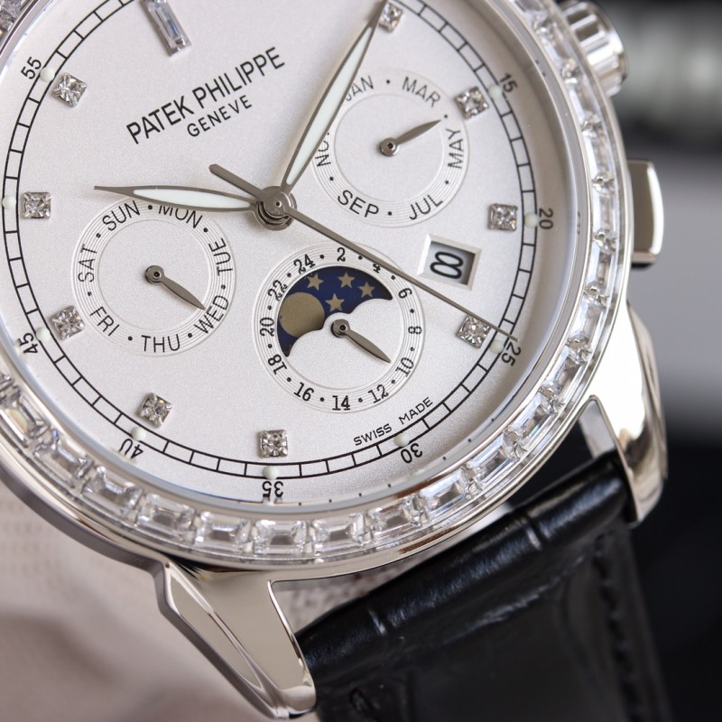 白1700 金1750 百达翡丽 Patek Philippe RP6 PP 惊艳登场,42毫米的表径适配大众男性手寸,非常商务可亦休闲。视觉冲击力强,令人过目不忘,实物质感更加优美。 1搭配进口9100多功能机芯【非市场普通国产机芯】(零返修)功能(24小时,星期/星辰/月份)此腕表拥有38-48小时动力储备. 2进口316L精钢,采用18k品质炉内真空电镀! 3搭配独家定制鳄鱼牛皮表带 4耐磨防刮蓝宝石玻璃镜面! 530米生活防水等级. 百达翡丽(Patek Philippe) 简约而不简单!实物拍摄品质如一 送礼最佳奢华推荐请认准TW独家品质