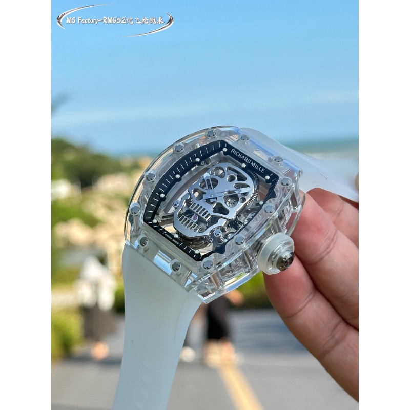 MS-Factory,理查德米勒-鬼王 理查RM052陀飞轮腕表 根据百万级正品理查德米勒为基础,推出蓝宝石水晶结合全透明表壳,搭配瑞士标准订制的陀飞轮机芯,表壳锁毕结构高度还原正品水准,根据真正的理查德米勒腕表设计进口橡胶材质表带,MS Factory勇于创新,不断完善原版的细节,提升腕表的品质!使得客户真正的体验一次亿万富翁的入场体验!年轻有为想成功,不戴理查一场空!!!